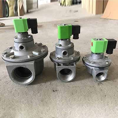 電磁脈沖閥的特征是閥的空氣進(jìn)出口管呈90度直角。閥內(nèi)的膜片把脈沖閥分成前、后兩個氣室,高壓氣從進(jìn)氣口接入,進(jìn)入下氣室,當(dāng)脈沖閥未得電時,氣體通過上下兩殼體的恒壓管道以及其中的節(jié)流孔進(jìn)入減壓室,由于閥芯在彈簧的作用下堵住泄壓孔,氣體不會排出,令減壓室和下氣室的壓力一致,而在彈簧作用下,膜片將噴吹口堵住,氣體不會沖出。當(dāng)脈沖閥得電時,閥芯在電磁力作用下向上抬起,泄壓孔打開,氣體噴出,由于恒壓管道節(jié)流孔的作用,泄壓孔的流出速度大于減壓室恒壓管氣體的流入速度,令減壓室壓力低于下氣室的壓力,下氣室的氣體將膜片頂起,打開噴吹口。