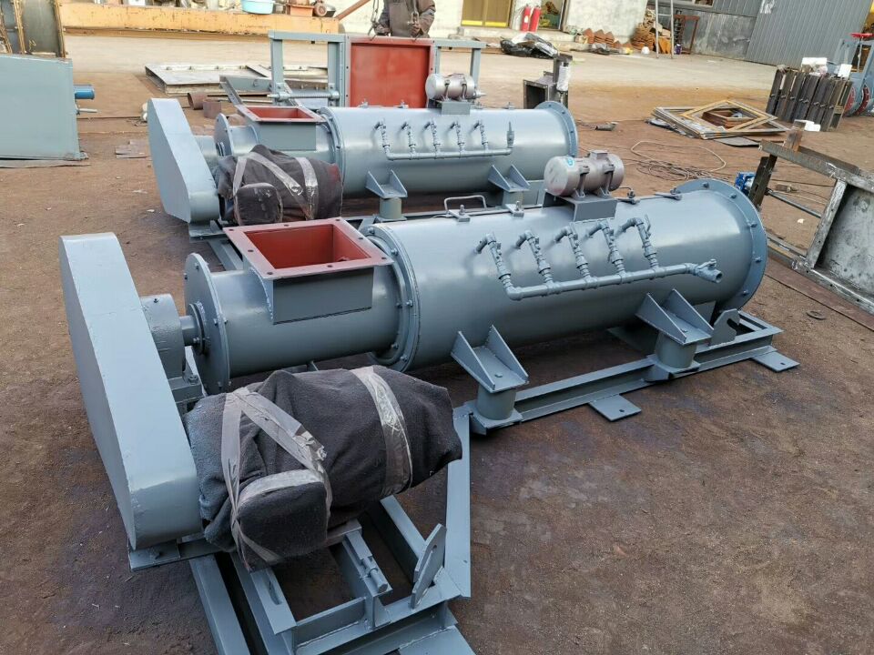 單軸粉塵加濕攪拌機(jī)由均勻供料,葉片輸料,混合擊打加濕,振動(dòng)系統(tǒng)四部分組成,且配電控和供水系統(tǒng),該機(jī)整體固定在一支架上,筒體由四組彈性元件支撐,通過激振裝置,施以振動(dòng),使整機(jī)在運(yùn)傳過程中,筒體作高頻振動(dòng),筒壁與攪拌軸之間始終保持間隙,使整機(jī)運(yùn)轉(zhuǎn)阻力大幅度減小,杜絕了悶機(jī)、堵轉(zhuǎn)現(xiàn)象,減少停機(jī)清理時(shí)間,提高工作效率。